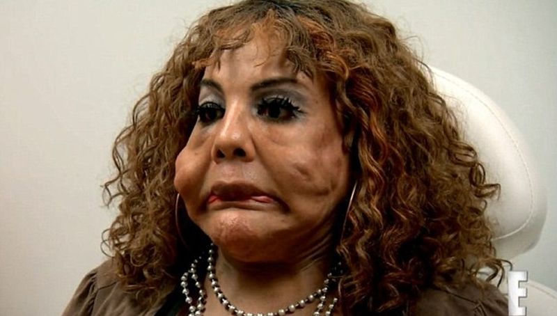 Η 48χρονη transgender από τη Φλόριντα ελπίζει οι χειρουργεί να μπορέσουν να αφαιρέσουν αυτά τα ενθέματα από το πρόσωπό της μια και καλή.