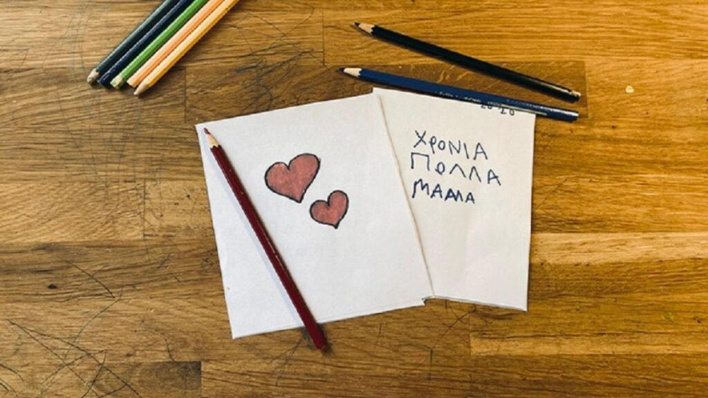 Στη φωτογραφία φαίνεται η κάρτα που χάρισε ο Μάξιμος για τη Γιορτή της Μητέρας στην Άρτεμις