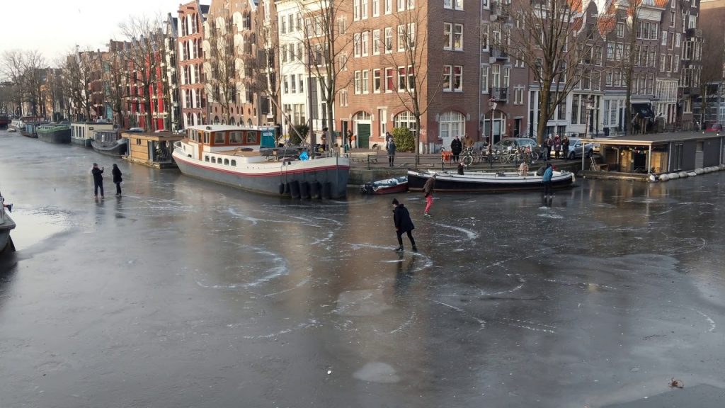 Η απίστευτη κακοκαιρία που σαρώνει την Ευρώπη έχει και τα καλά της: στο Άμστερνταμ, πολλοί βγήκαν με τα παγοπέδιλα έξω, για να απολαύσουν τις νέες… πίστες.