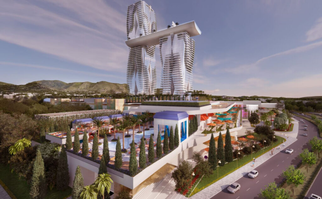 Το κτήριο, στο οποίο θα φιλοξενηθεί το πολυτελές ξενοδοχείο και Καζίνο, έχει εμπνευστεί από τα αγάλματα των Καρυάτιδων και έχει σχεδιαστεί από τον διεθνούς φήμης αρχοτέκτονα, Πολ Στίλμαν, με στόχο να θυμίζει… Αθήνα.