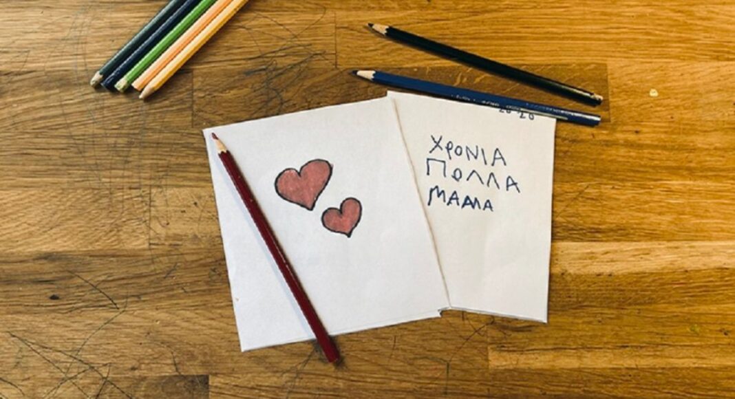 Στη φωτογραφία φαίνεται η κάρτα που χάρισε ο Μάξιμος για τη Γιορτή της Μητέρας στην Άρτεμις