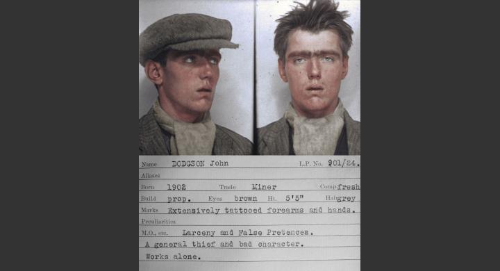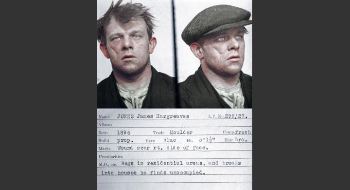 Οι φωτογραφίες προέρχονται από ένα βιβλίο ταυτοποίησης της Βρετανικής αστυνομίας και δείχνουν άνδρες που συνελήφθησαν για εγκλήματα όπως κλοπές, φθορά ξένης περιουσίας και επαιτεία.