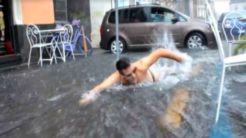 Ένας τύπος στη Σικελία δεν πτοήθηκε από την καταιγίδα, αλλά με μαγιό και κοκτέιλ στο χέρι «τρόλαρε» και τον καιρό!