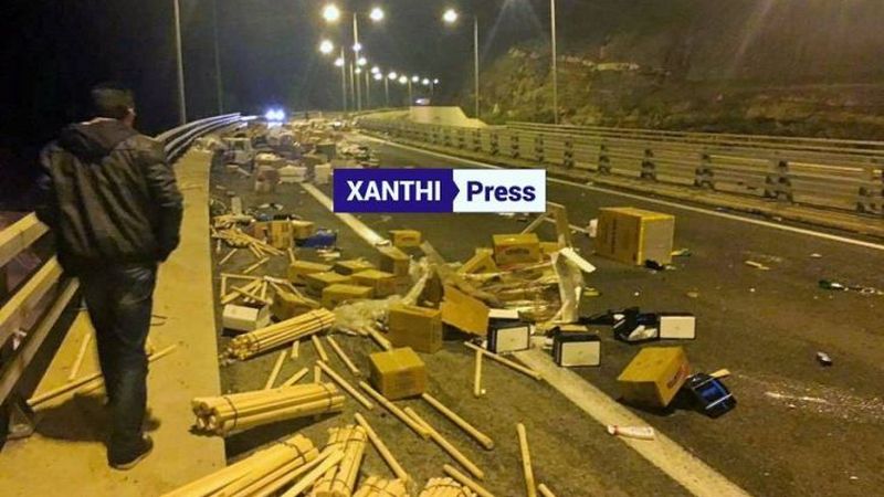 Ο οδηγός της νταλίκας εθνικών μεταφορών με προορισμό την Αλεξανδρούπολη, στο ρεύμα καθόδου προς τη Βιομηχανία Φωσφορικών Λιπασμάτων, έχασε στιγμιαία τον έλεγχο του οχήματος, πιθανότατα από μετατόπιση φορτίου, με αποτέλεσμα να «διπλώσει» και να αδειάσει όλα τα εμπορεύματα στο δρόμο αναφέρει το xanthipress.gr.