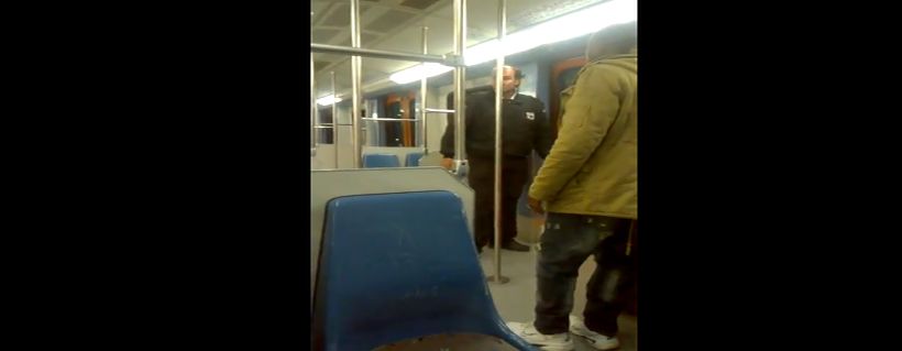Ο υπάλληλος security “διατάζει” τον μετανάστη να κατέβει από το τρένο αναφέροντας, “εγώ κάνω κουμάντο εδώ”. Ο μετανάστης αρνείται και τον υπερασπίζεται κοπέλα που καταγράφει το περιστατικό. Η εν λόγω κοπέλα ισχυρίζεται ότι οι αποσκευές είναι δικές της και τελικά, ο υπάλληλος security φεύγει από το βαγόνι.