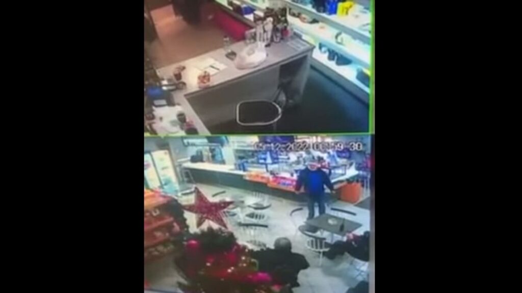 Στο βίντεο ντοκουμέντο οι τέσσερις αστυνομικοί της ομάδας ΔΙΑΣ σηκώνονται από τις θέσεις τους, φορούν τον εξοπλισμό τους και φεύγουν από το κατάστημα.