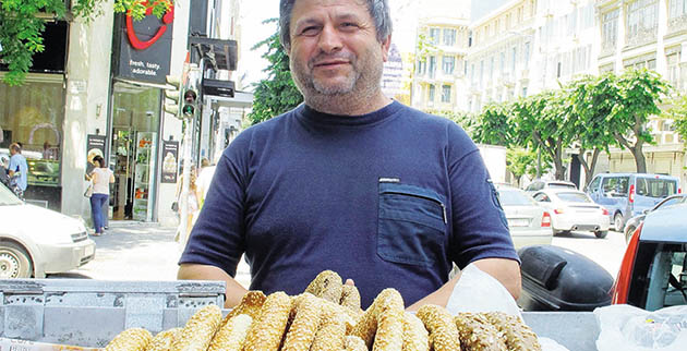 «Είμαι 52 ετών και δούλευα 30 χρόνια σαν βαφέας υφασμάτων. Η κρίση έβαλε λουκέτο στην εταιρία. Εψαχνα δουλειά για δύο χρόνια, αλλά δεν έβρισκα τίποτα. Τα… έτοιμα τελείωσαν γρήγορα και τα χρήματα από το ταμείο ανεργίας δεν φτάνουν ούτε για τους λογαριασμούς. Εχω παιδί 13 ετών με ειδικές ανάγκες. Ο θείος μου, που πουλούσε κουλούρια παλιότερα στο κέντρο της πόλης, με… έσπρωξε να το κάνω κι εγώ» εξηγεί ο ίδιος.