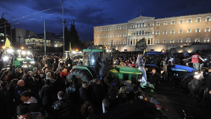 Σύμφωνα με τις εκτιμήσεις της αστυνομίας, περισσότεροι από 10.000 αγρότες από όλη την Ελλάδα μετείχαν στη μαζική συγκέντρωση στο κέντρο της Αθήνας, το βράδυ της Παρασκευής. Ο παλμός ήταν μεγάλος και κορυφώθηκε όταν έφτασαν έξω από τη Βουλή τα τρακτέρ, από το μπλόκο της Νίκαιας, στη Λάρισα. Οι συγκεντρωθέντες άρχισαν ν χειροκροτούν, να ανάβουν καπνογόνα και να αποθεώνουν τους εποχούμενους αγρότες και το συμβολικό τρόπο που διαμαρτυρήθηκαν.