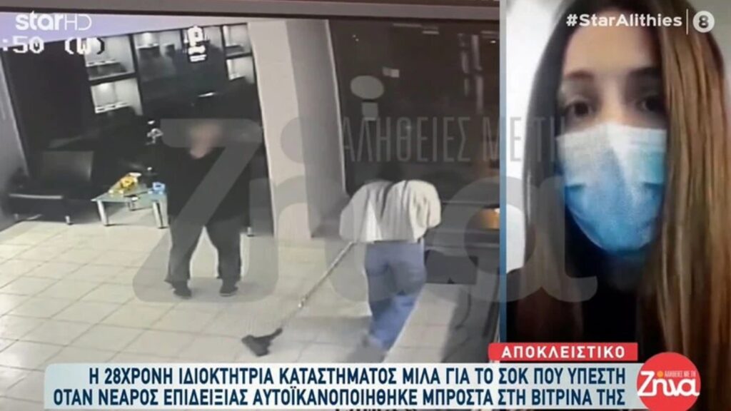 «Βρισκόμουν στο μαγαζί του συντρόφου μου, είχα έρθει να τον βοηθήσω στο κλείσιμο. Εκείνη την ώρα σκούπιζα. Μπήκε μέσα ένας νεαρός χωρίς μάσκα γύρω στα 30. Εξέτασε τον χώρο προσεκτικά να δει μήπως βρίσκεται κανένας και με ρώτησε εάν υπάρχει τουαλέτα. Ενώ υπάρχει του είπα ”όχι” γιατί φοβήθηκα. Βγήκε έξω και άναψε τσιγάρο» δήλωσε η 28χρονη στην εκπομπή του Star «Αλήθειες με τη Ζήνα».