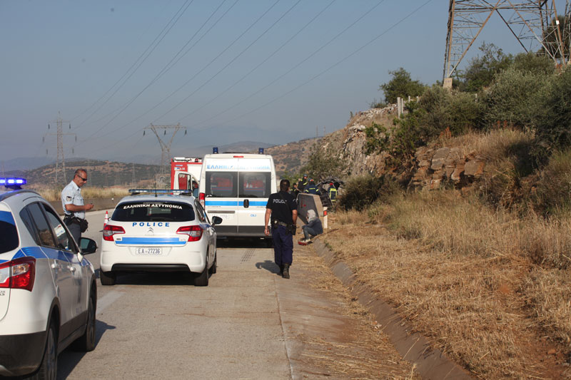 Το αυτοκίνητο είναι μια άμορφη μάζα με την Πυροσβεστική υπηρεσία να προσπαθεί να απεγκλωβίσει τους άτυχους μετανάστες μέσα από το όχημα.
