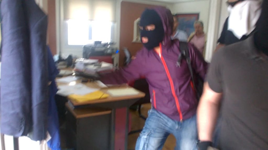 “Δεν είναι περίοδος για μακροσκελείς θεωρητικές αναλύσεις. Όταν χιλιάδες άνθρωποι της τάξης μας απειλούνται με κατασχέσεις σπιτιών είναι η ώρα για δράση. Όσοι συμμετέχουν σε διαδικασίες εξώσεων, κατασχέσεων και πλειστηριασμών των λαικών κατοικιών θα βιώνουνε και την αντίδραση των από τα κάτω. Σήμερα λίγο μετά της 10 το πρωί επιτεθήκαμε στο συμβολαιογραφείο της Δάλλας Πολυζώη Θηρεσία.