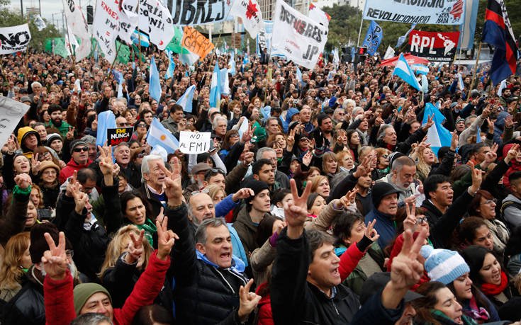 Δεκάδες χιλιάδες διαδηλωτές κατέκλυσαν τους δρόμους του Μπουένος Άιρες χθες, εκφράζοντας την αντίθεσή τους στη σύναψη συμφωνίας με το Διεθνές Νομισματικό Ταμείο και την οικονομική πολιτική λιτότητας που εφαρμόζει η κυβέρνηση του προέδρου της Αργεντινής Μαουρίσιο Μάκρι.