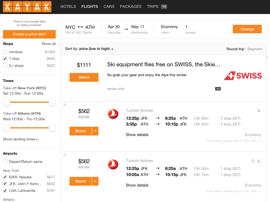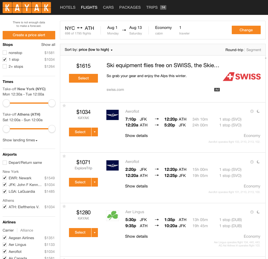 Αρχικά αναζητά τα αεροπορικά εισιτήρια, τα οποία για ένα ταξίδι 12 ημερών της κοστίζουν στην περίπτωση που ταξιδέψει στο τέλος Απριλίου μόλις 562 δολάρια.