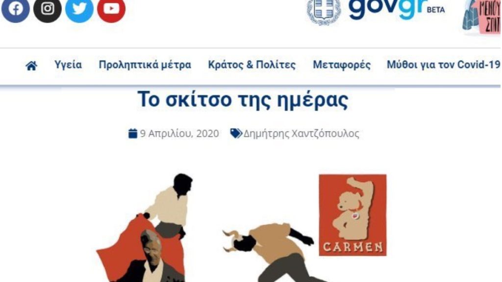 Έμπαινες λοιπόν στο gov.gr που γράφει όλες τις επίσημες και χρηστικές πληροφορίες, την «Άυλη συνταγογράφηση», την «Έκδοση εξουσιοδότησης», την «Έκδοση υπεύθυνης δήλωσης», την ενότητα με τα σκίτσα της ημέρας!
