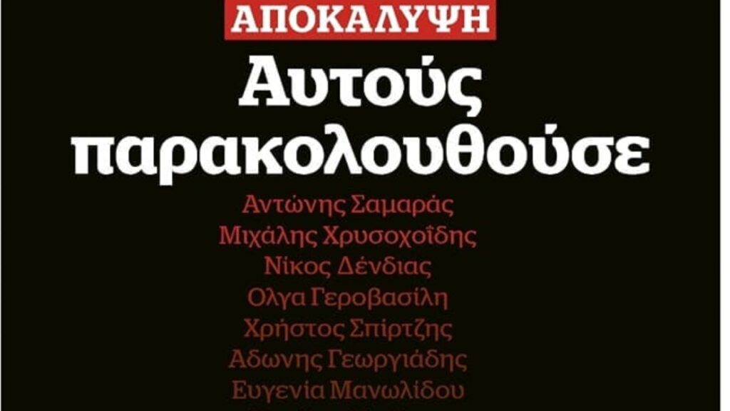 Σκάνδαλο Παρακολουθήσεων: Τη λίστα με τα πολιτικά πρόσωπα που παρακολουθούσε το σύστημα Μητσοτάκη δημοσιεύει την Κυριακή η εφημερίδα Documento, κάτι που αναμένεται να προκαλέσει πολιτικό σεισμό.
