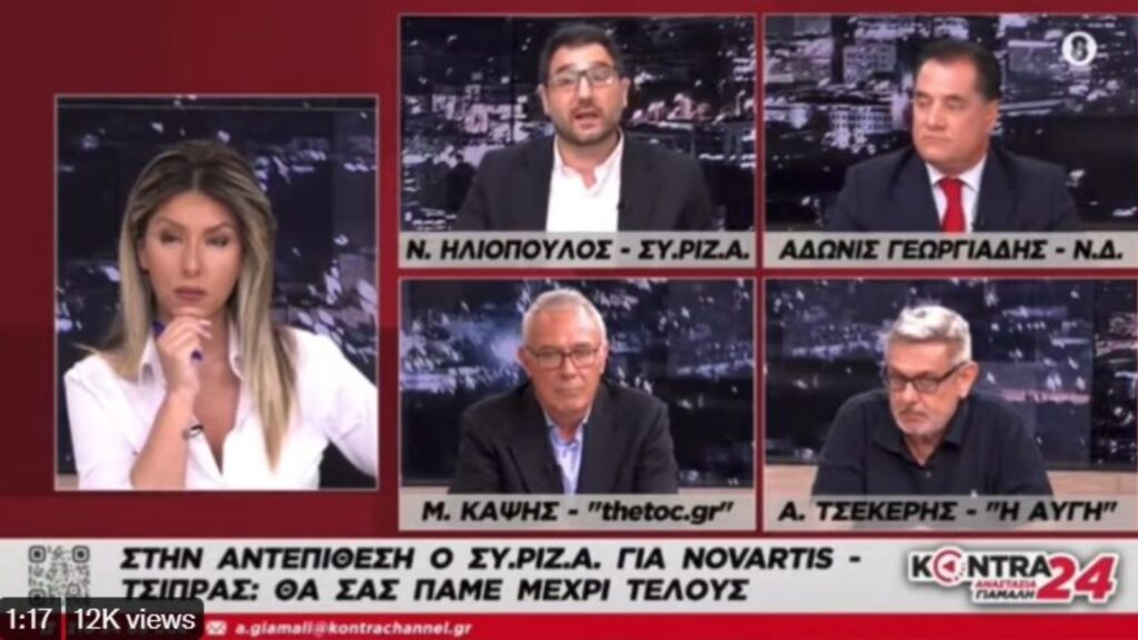 Σίγουρα μετάνιωσε ο Άδωνις Γεωργιάδης που δέχθηκε να βρεθεί απέναντι στον Νάσο Ηλιόπουλο, καλεσμένοι και οι δύο στο Kontra και στην Αναστασία Γιάμαλη. Αναφερόμενος στο σόου Μητσοτάκη στο Στρασβούργο, όταν για να απαντήσει στην κριτική για την ελευθεροτυπία στη χώρα μας έδειξε δύο εφημερίδες, την «Αυγή» και την «Δημοκρατία», ο Νάσος Ηλιόπουλος τόνισε με νόημα: «Τον έναν από τους δύο (σ.σ. τον δημοσιογράφο-εκδότη της «Δημοκρατίας» Γ. Φιλιππάκη) πήγαν να τον βάλουν φυλακή. Πλάκα κάνουμε; Θεώρησε ότι είναι καλό παράδειγμα να σηκώσει το πρωτοσέλιδο εφημερίδας που προσπάθησε να βάλει φυλακή τον εκδότη, που τον είπε “συμμορία” και “υπόκοσμο”; Αυτό το θεωρεί καλό παράδειγμα ελευθεροτυπίας; Δηλαδή υπάρχει κάποιος στο επιτελείο του που του είπε “Πρόεδρε, έχω μια καταπληκτική ιδέα. Σήμερα θα κάνουμε αυτό στο Στρασβούργο” και είπε “Ναι, μπράβο παιδί μου, είναι πολύ ωραία ιδέα”;».