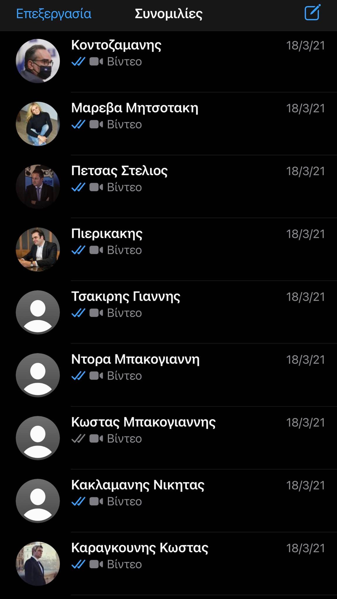 Την ανάρτησή του συνοδεύουν φωτογραφίες από το κινητό του (όπως ισχυρίζεται) με αποστολή βίντεο στα κινητά, μεταξύ άλλων, του Κυριάκου και της Μαρέβας Μητσοτάκη.