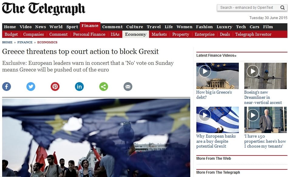 Telegraph: Προσφυγή στο Ευρωπαικό Δικαστήριο εξετάζει η Ελλάδα ενάντια στο Grexit