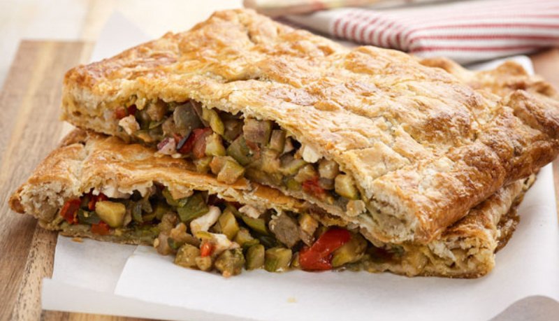 Πίτα σφολιάτας με λαχανικά και μανούρι