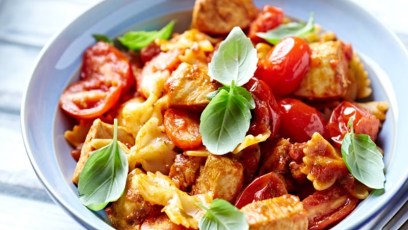 Φαρφάλες με ντοματίνια και κοτόπουλο