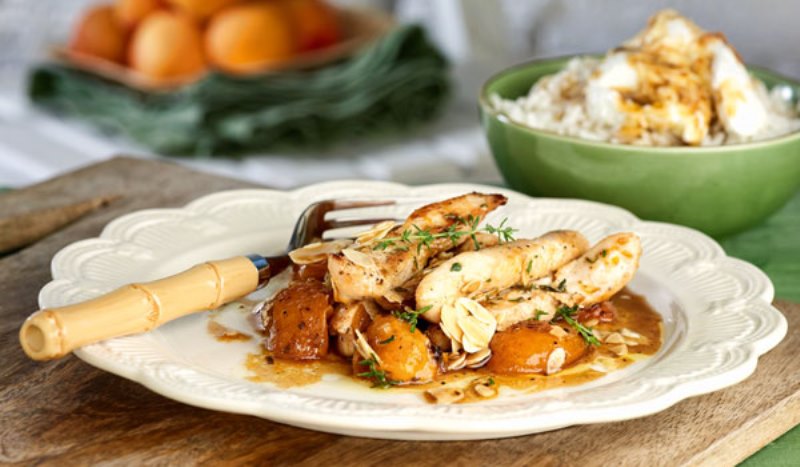 Τα βερίκοκα δίνουν μια υπέροχη γλυκόξινη γεύση στο πιάτο που ταιριάζει πολύ στο κοτόπουλο. Μπορείτε να κάνετε την ίδια συνταγή και με κοπανάκια κοτόπουλου.