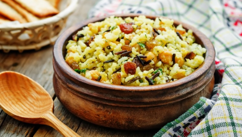 Ρεβίθια με άγριο ρύζι και σταφίδες