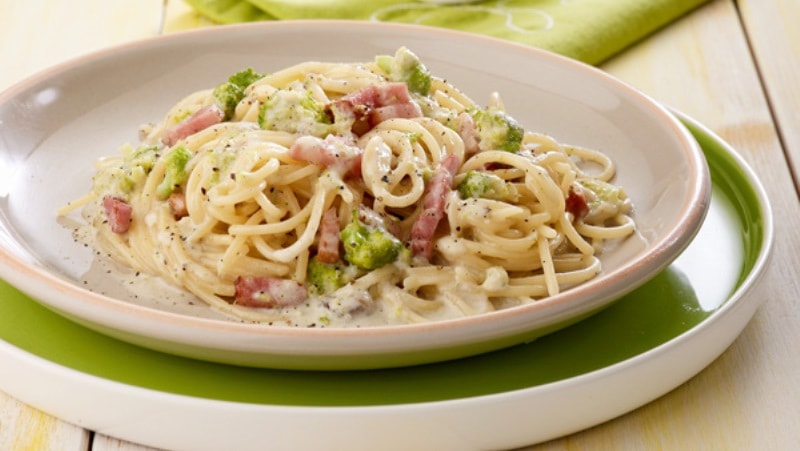 Σπαγγέτι με πανσέτα καπνιστή, μπρόκολο και παρμεζάνα