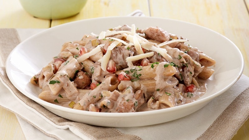 Πένες με κοτόπουλο, ρόδι και κρεμώδη σάλτσα