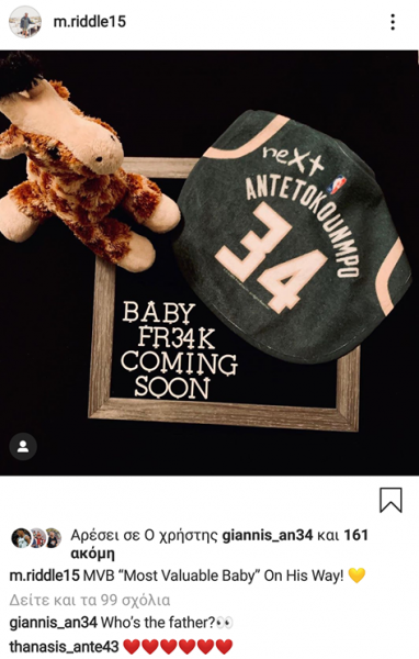 Μάλιστα, ο σούπερ σταρ των Μπακς έκανε πλάκα στο σχετικό post, ρωτώντας ποιος είναι ο πατέρας, με τον αδελφό του, Θανάση, να σχολιάζει καρδιές.