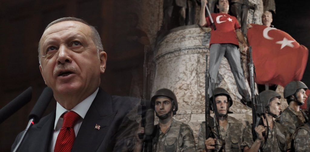 «Το βράδυ της 15ης Ιουλίου με συμβούλεψαν να πάω σε ένα (ελληνικό) νησί. Αλλά εγώ τους είπα “εγώ σε τούτα τα εδάφη γεννήθηκα, σε τούτα και θα πεθάνω”» ανέφερε χαρακτηριστικά ο Τούρκος πρόεδρος, αποσπώντας τα χειροκροτήματα των βουλευτών του κόμματός του και όσων παρακολουθούσαν την ομιλία του, ενώπιον της κοινοβουλευτικής ομάδας.
