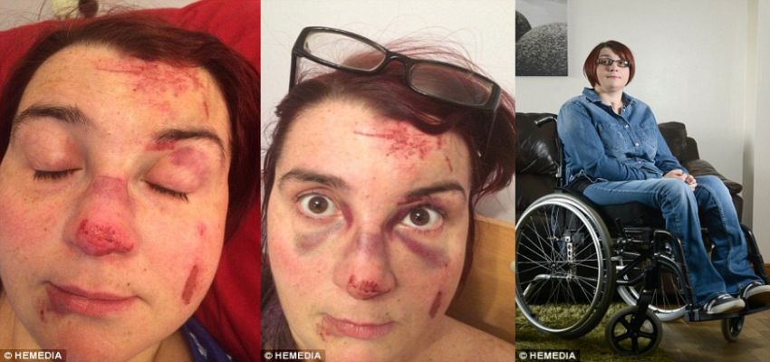 «Ένα 5λεπτο ήταν αρκετό» δηλώνει η ίδια, στην προσπάθεια της να περιγράψει πως ακριβώς της επιτέθηκε ο άντρας της. Τώρα η 34χρονη είναι καθηλωμένη σε αναπηρικό καροτσάκι.