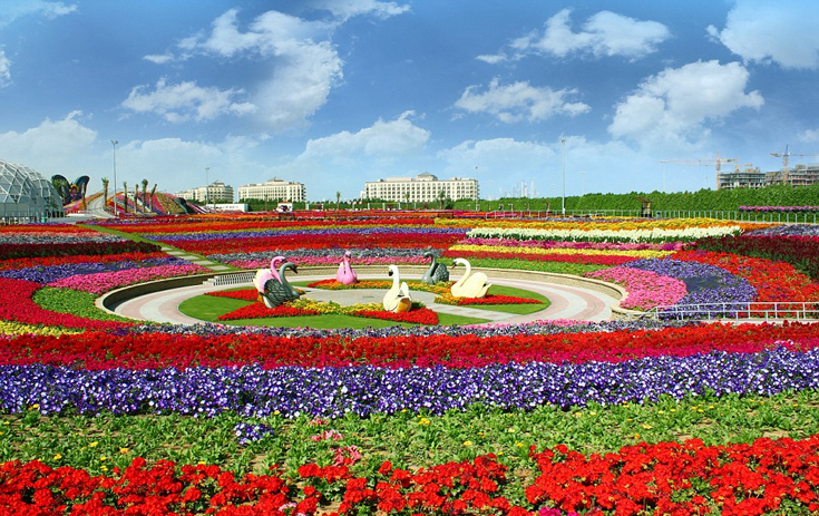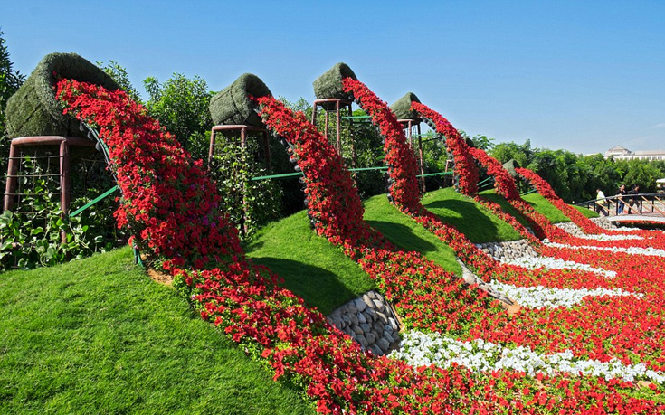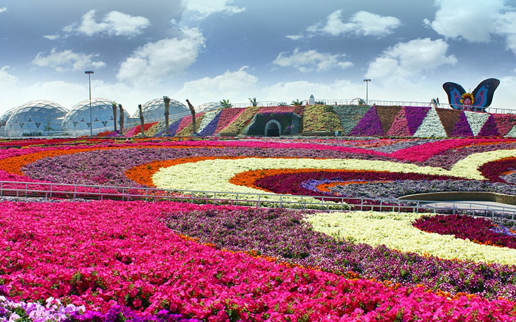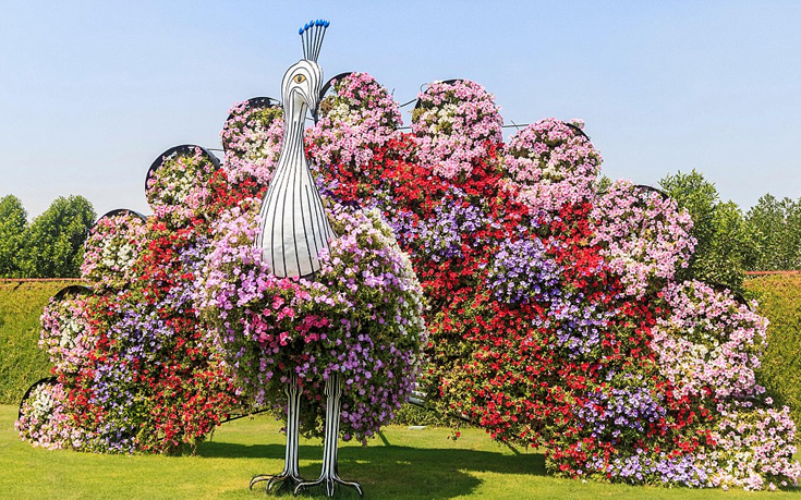 Ο κήπος Miracle Garden του Ντουμπάι περιλαμβάνει 45 εκατομμύρια λουλούδια, πολύχρωμες εκτάσεις που ευωδιάζουν και περίτεχνα γλυπτά, όλα στολισμένα με λουλούδια.